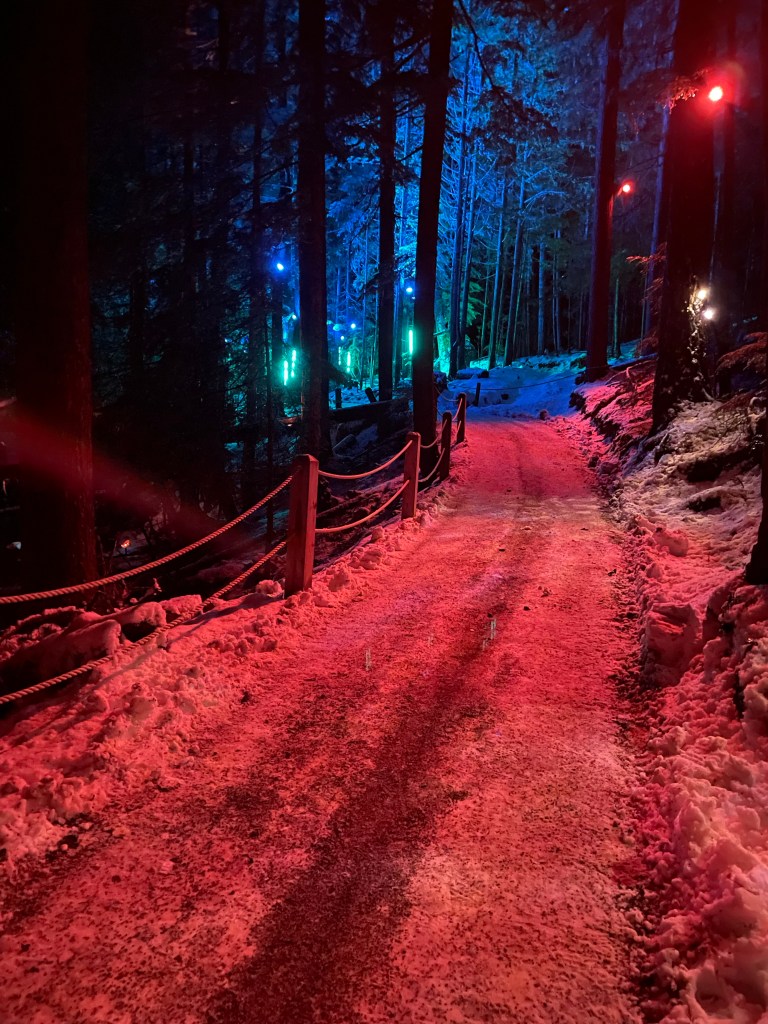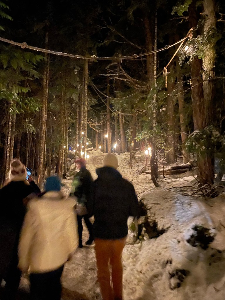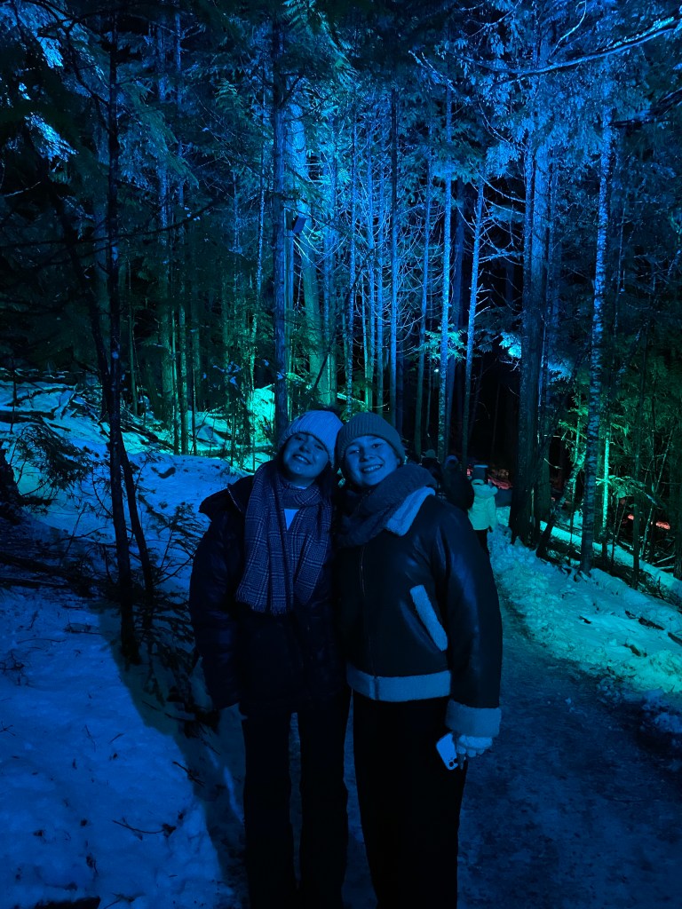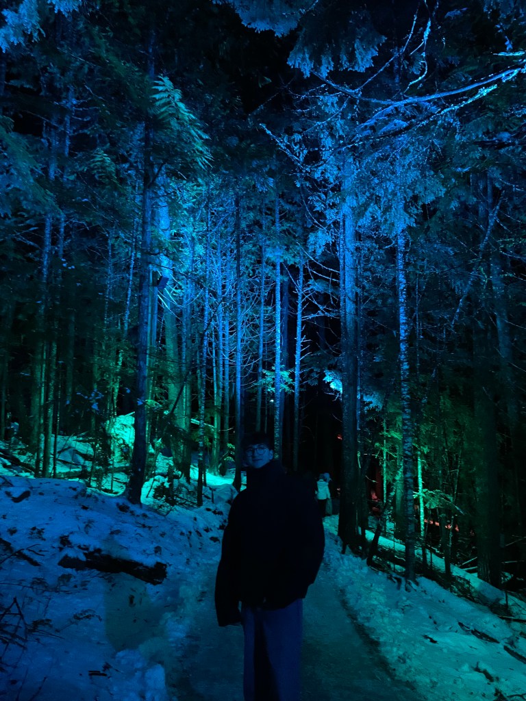 Für mich ging es von Samstag bis Sonntag Abend auf einen Trip, organisiert von der Schule. Der Trip startete um 8 Uhr morgens an der Schule, nach rund einer Stunde Fahrt stand Shannon Falls zuerst auf dem Programm wo wir einen schönen Wasserfall über unseren Köpfen zu sehen bekamen. Anschließend ging es weiter zu Mount Whistler, wo wir sofort mit Schnee begrüßt wurden. Zuerst haben wir die kleine Örtliche Stadt besichtigt, wo es viele schöne Reataurants und weitere Attraktionen gab, es hat mich sehr stark an die Skisaison erinnert, mit den vielen Skifahrern die ihr Equipment an uns vorbei trugen. In unserer Freizeit begaben wir uns auf eine kurze Wanderung zum „Lost Lake“ welcher wunderschön umgeben von einer Baumfront zu sehen war. Nach einigen Stunden Pause im beheizten Pool ging es los zu unserem letzten Stop des Tages, „Vallea Lumina“, was eine ungefähr 30 minütige Tour durch den künstlich beleuchteten Wald und mit dem Schnee ein echtes Schauspiel war.