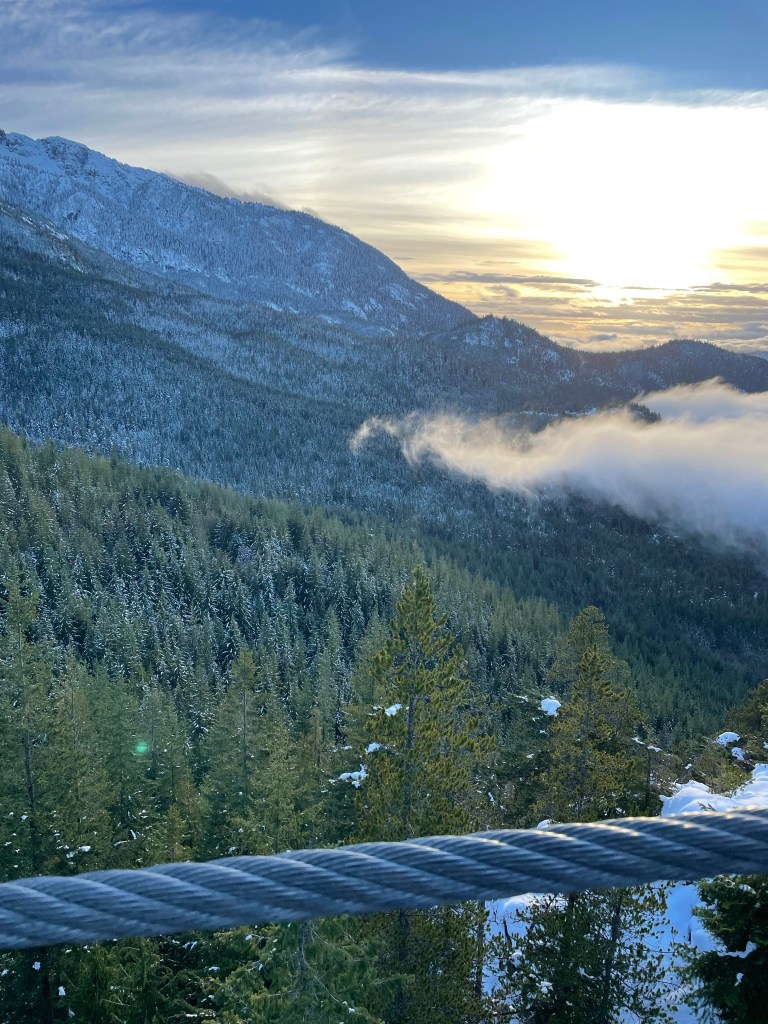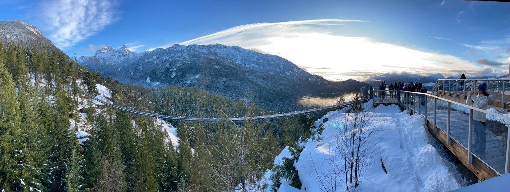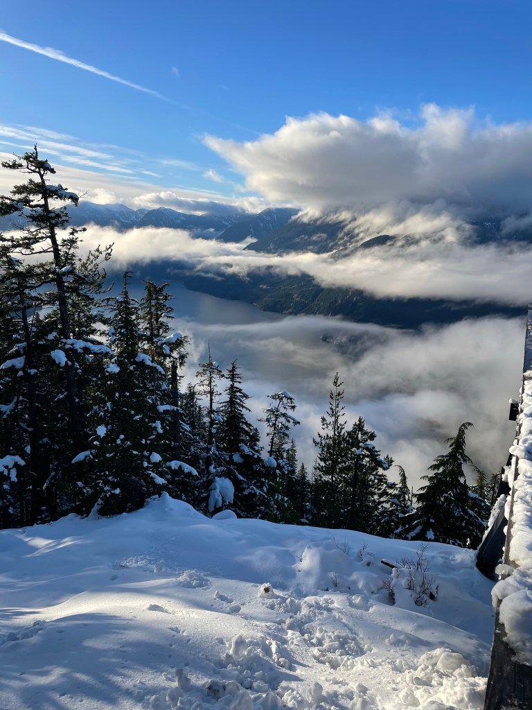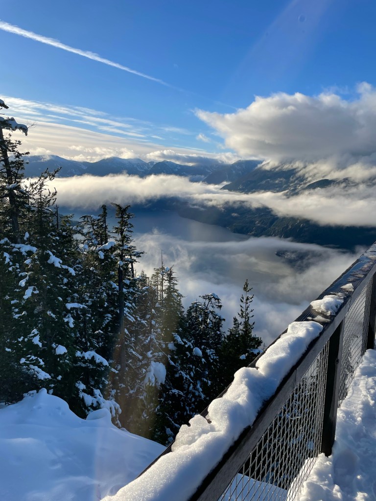 Am nächsten Tag besuchten wir zuerst ein Museum der Urheimischen, da das Land auf dem wir uns bewegten ursprünglich unter 2 Stämmen aufgeteilt war. Der nette Führer zeigte uns verschiedene Bräuche und führte uns in ihre Kultur ein. Der letzte Stop dieser wunderbaren Tour begann mit dem Weg auf einen Berg nahe Shannon Falls. Oben angekommen, wurden wir sofort mit Schneeschuhen ausgestattet, die 1stündige Tour konnte also beginnen. Auf halber Strecke erreichten wir eine Aussichtsplattform von der aus sich ein wunderbarer Ausblick über das Tal, die Berge und die Wolken ergab. Nach der Tour ging es über eine kleine, sehr schmale Brücke zu einer weiteren Aussichtsplattform von der aus man ein weiteres Mal die fantastische Natur bewundern konnte. Dieser Ausblick rundete diesen insgesamt sehr gelungenen Trip ausgezeichnet ab.